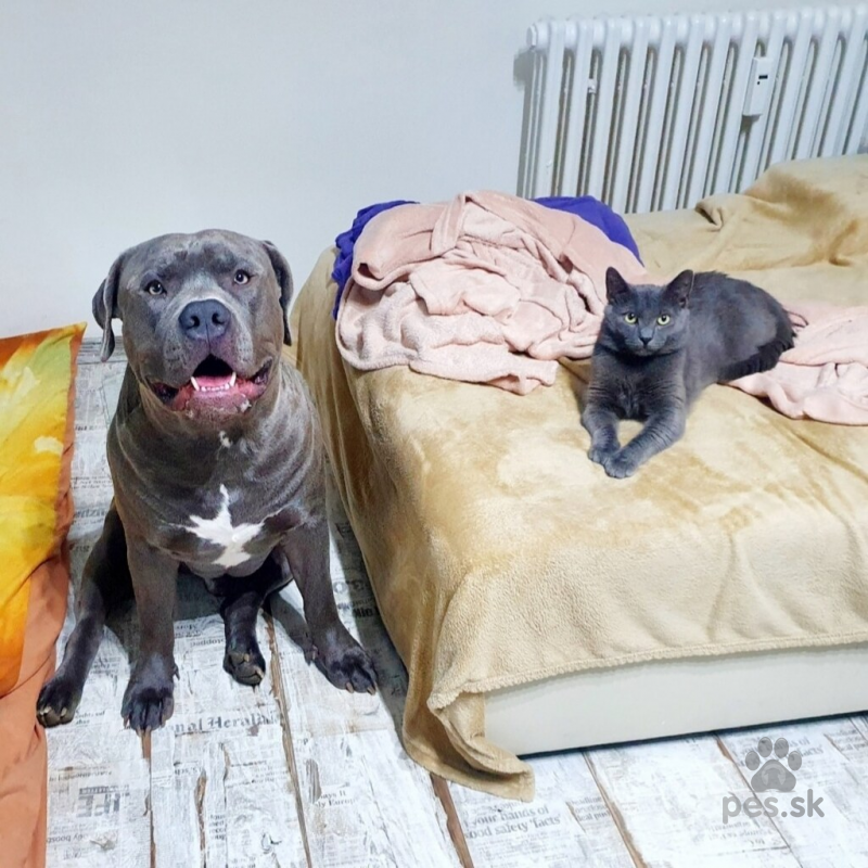 (28.01.2026)Hľadám domov pre American bully xl ma veľmi dobrú povahu,aj s mackou je kamarát,nevie brechat,má 7 rokov je to PP pes...psíka nedam hocikomu...je to bytový pes...musí byť vo vnútri...