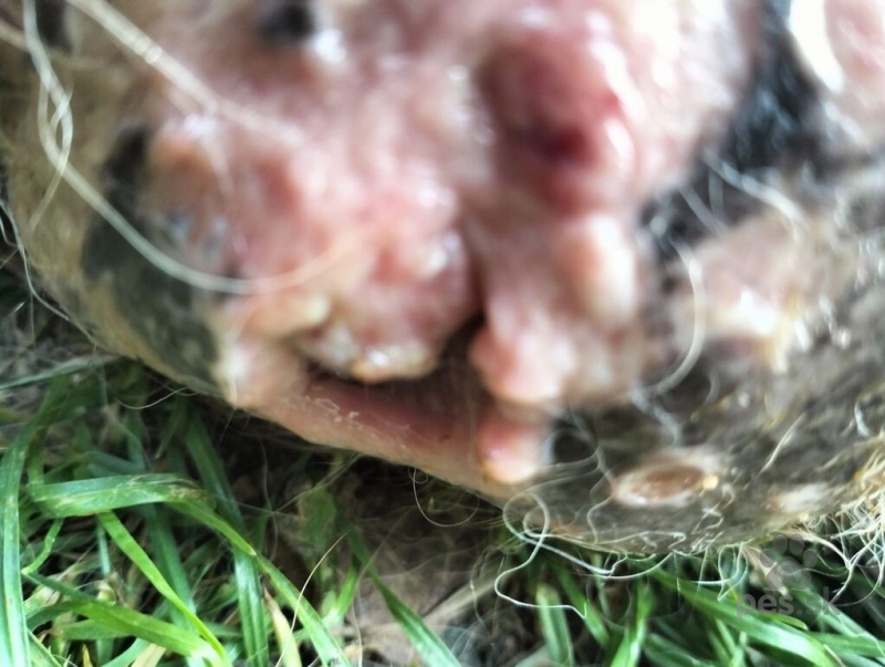 Dobrý deň našla som psíka je v osade všimla som si ze ma otvorené rany a hrce ktoré hnisaju.